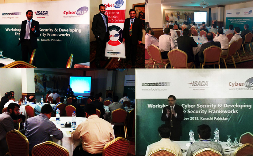 December 9th, 2015 INFOGISTIC Pvt Limited organized a workshop on Cyber Security & Developing Enterprise Security Frameworks in Karachi, Pakistan. The workshop gathered 50 information technology professionals, a majority of which were CISOs (Chief Information Security Officer) from the renowned organizations all over Karachi in particular from the banking sector. The workshop covered a range of concepts related to cyber security, modern day challenges, cyber warfare, and role of individuals, corporates and regulators.